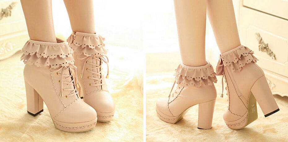 Sweet lace high-heeled shoes