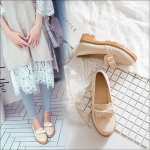 Fabric Material: Pu Size: EU34/22.3cm/8.67" EU35/22.5cm/8.87" EU36/23.0cm/9.06" EU37/23.5cm/9.26" EU38/24cm/9.46" EU39/24.5cm/9.65" Color: Pink, Beige, Blue Style:Japanese,Sweet,Bow Heel Height: 3cm/1.18"