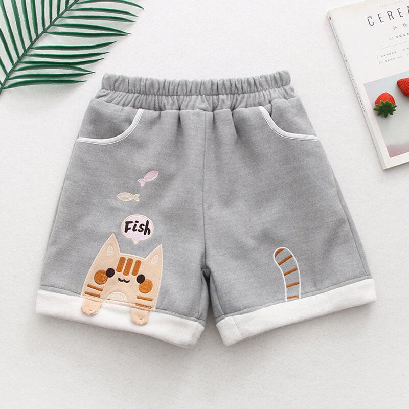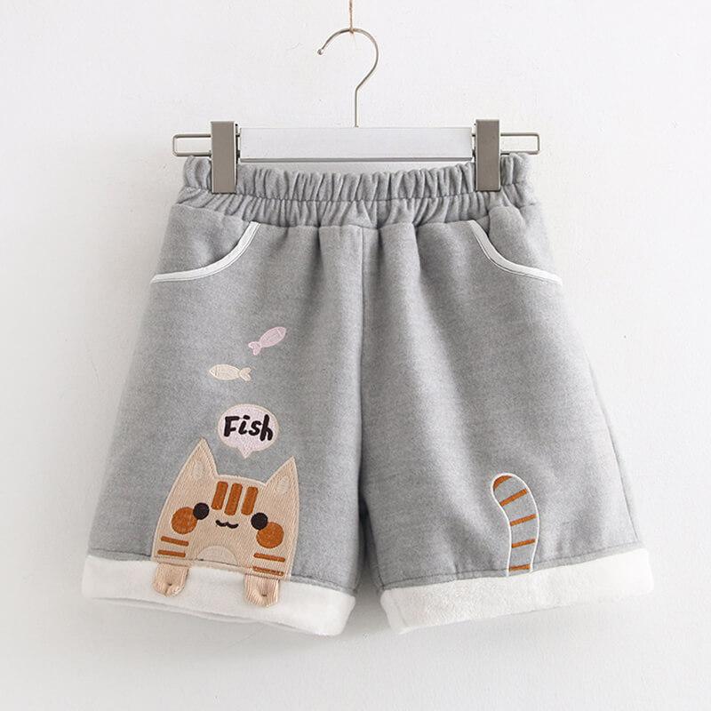 Cat Eating Fish Woolen Shorts