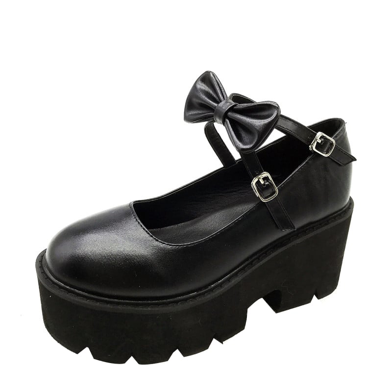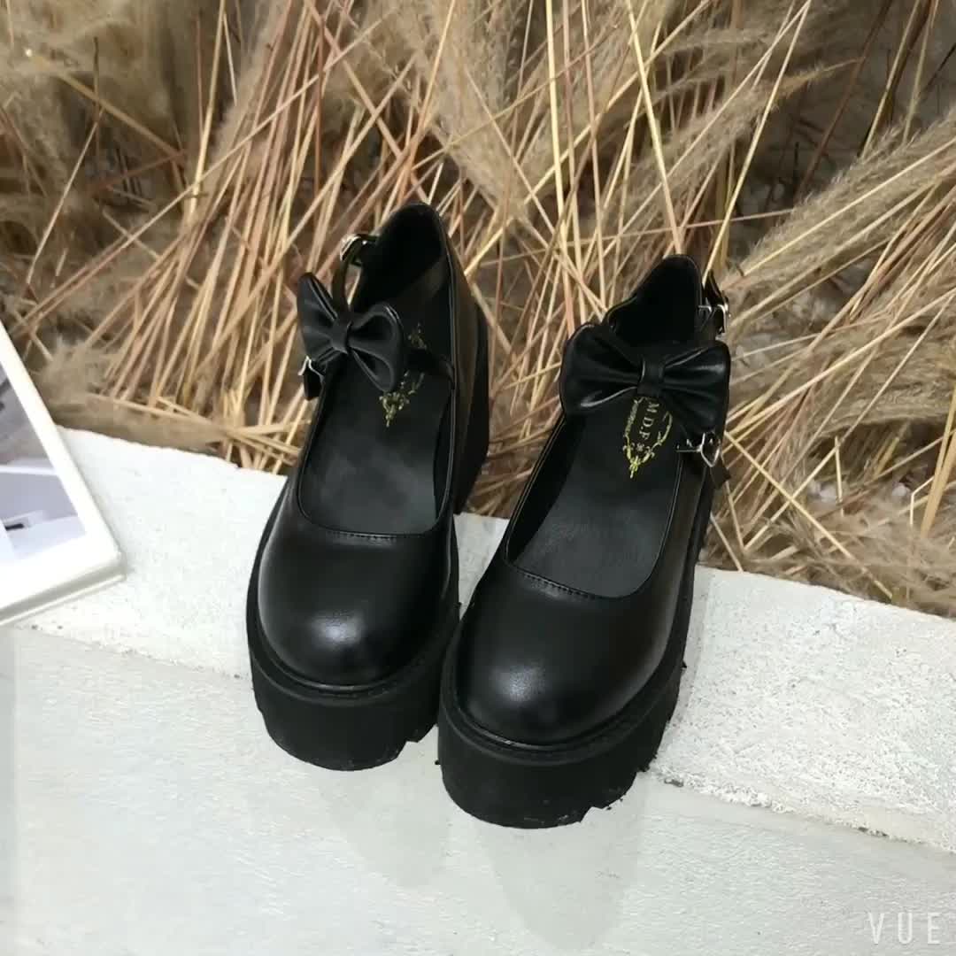 Fabric Material: Leather Color: Black Platform: 7cm/2.76" Size: EU35 / 22.5cm / 8.87", EU36 / 23.0cm / 9.06", EU37 / 23.5cm / 9.26", EU38 / 24.0cm / 9.46", EU39 / 24.5cm / 9.65",